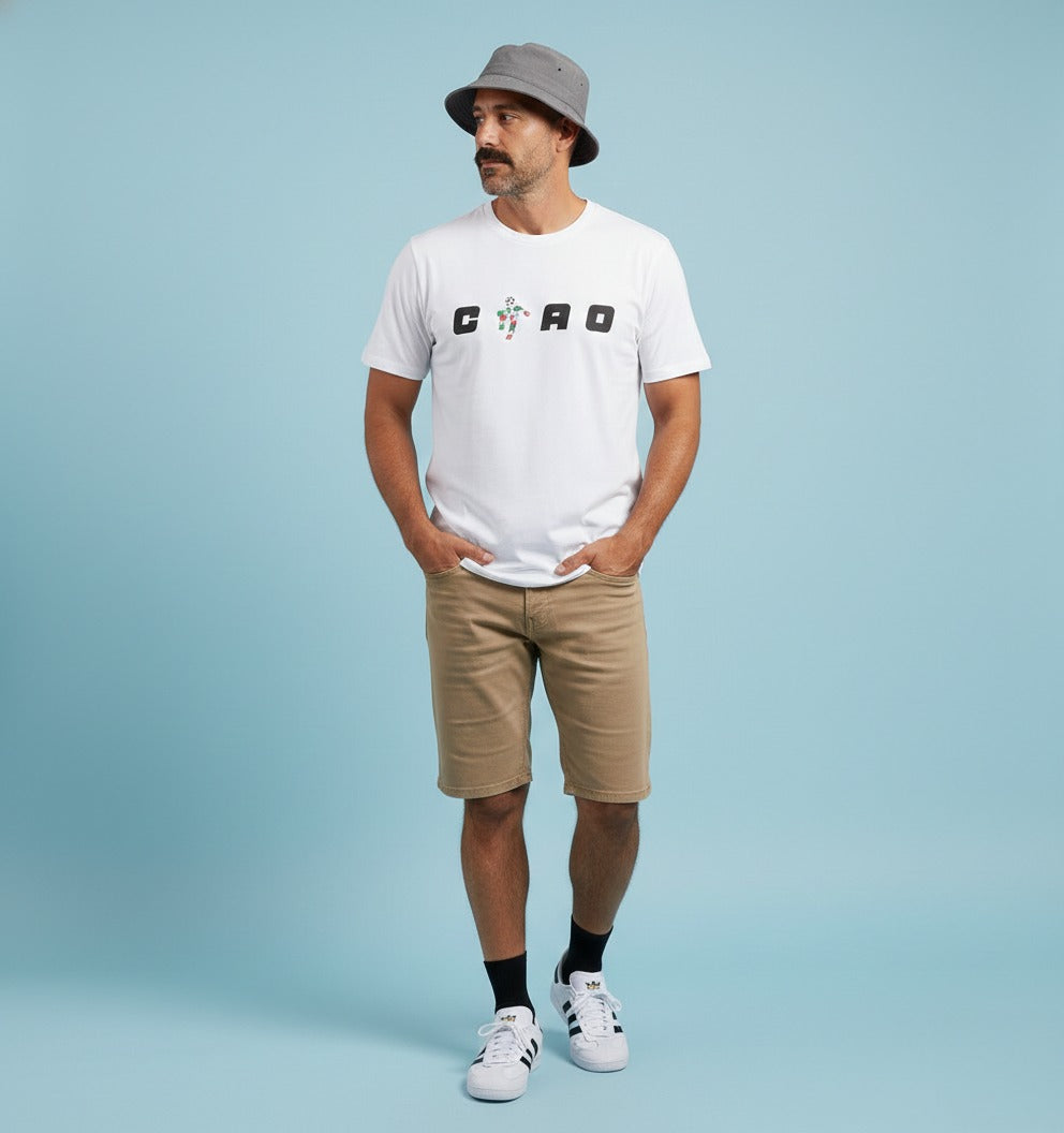 La polera "CIAO90" es 100% de algodón, de una calidad premium y con un estampado realizado a través de impresión directa. Con la compra de tu polera recibe un sticker oficial de Memorias Don Balón 🇮🇹