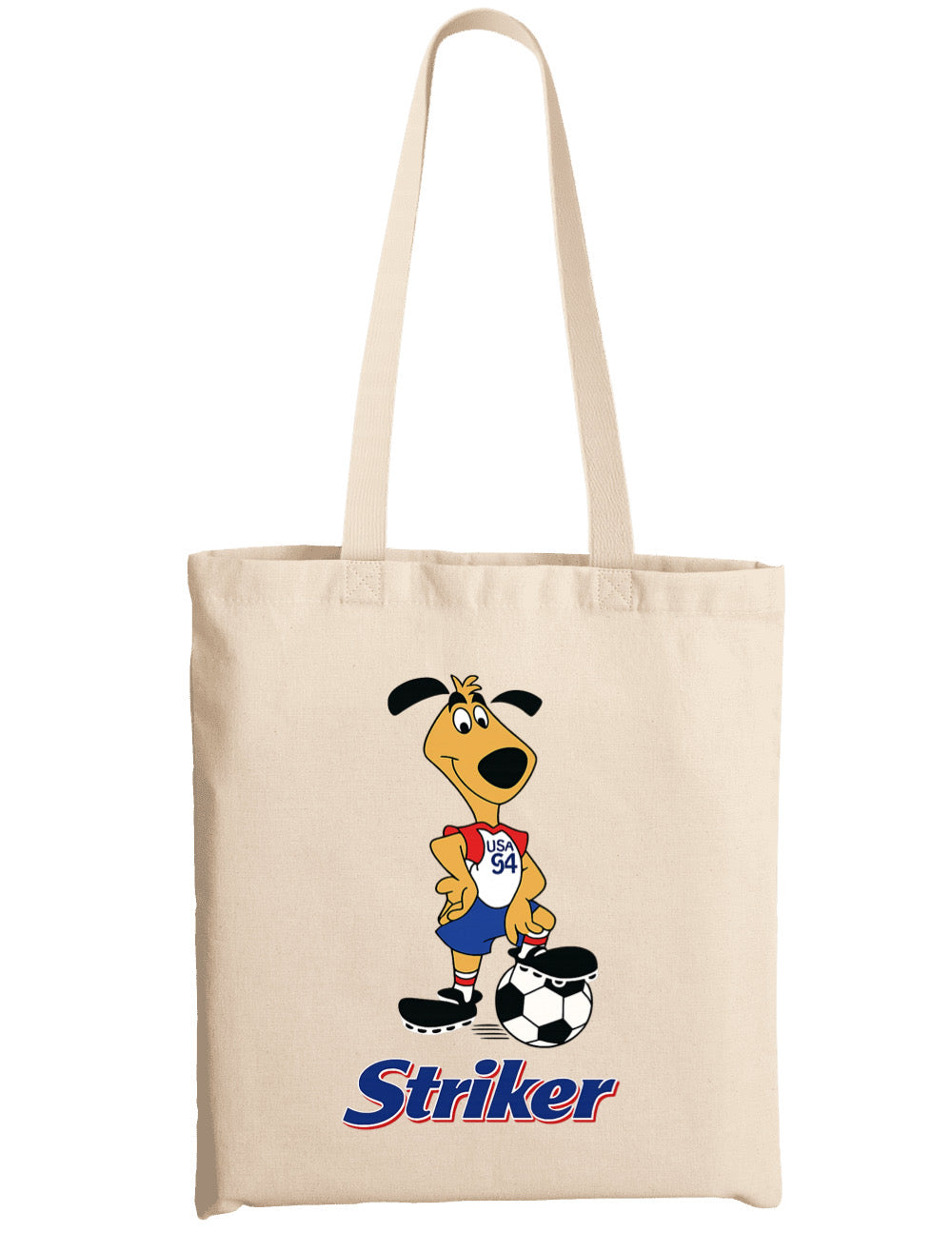Esta totebag es una bolsa de algodón de 42x38 cm con un diseño original minimalista inspirado en la icónica mascota del mundial de USA 94. Práctica, liviana y perfecta para acompañarte a todos lados.